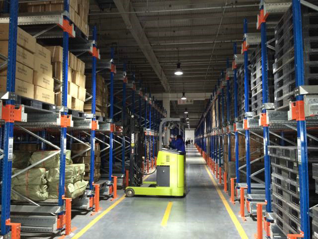 穿梭车货架系统的使用非常方便,首先用叉车将穿梭车放入轨道的前端,轨道的截面为倾斜状,方便将小车置入,然后将货物放在轨道上的初始位置,这时操作遥控器按下自动入库键即可将带有托盘的货物运入巷道深处完成存储的动作。取货时同时将小车置入轨道的初始位,操作遥控器按下自动出库键,穿梭车将货物搬运至轨道端头,叉车将其取下,完成出库动作,然后转向下一个通道作业。穿梭车还能够自动进行A/B面切换,实现穿梭小车在轨道的两端存取货。