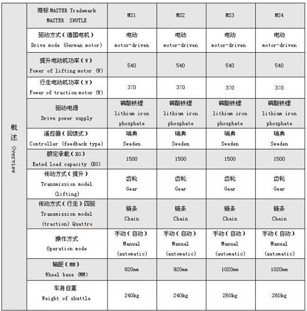 本存储系统使用的穿梭车为我公司自动化部技术工程师独立研发并拥有完全自主知识产权的高科技产品。产品设计先进,配置高,功能强大,装配精良。关键的电机、减速机、驱动器、控制器,回馈式数显遥控器、激光感应测距器等核心光电组件等均采用德国等国外品牌。和国内普通穿梭车相比具有承载大、速度快、配置高、功能全的特点。穿梭车外型为委托专业工业设计公司设计,外观新颖,符合人机工程学原理要求。